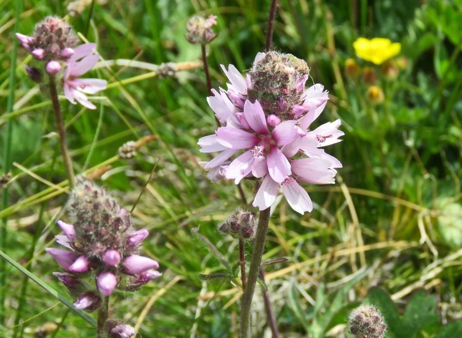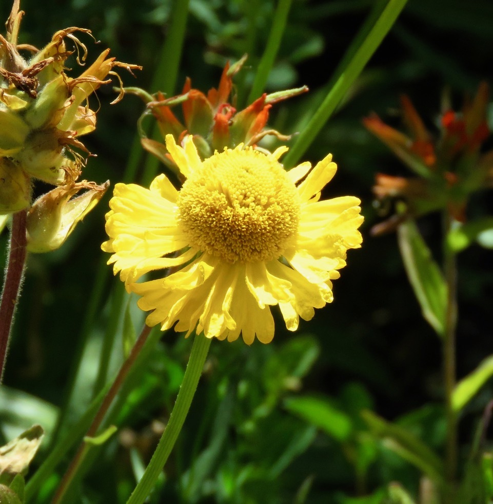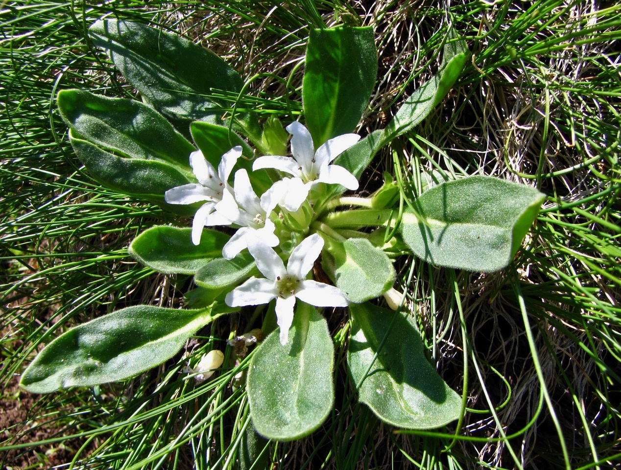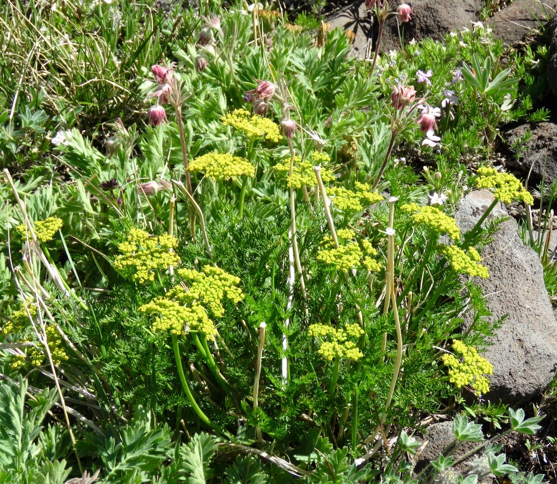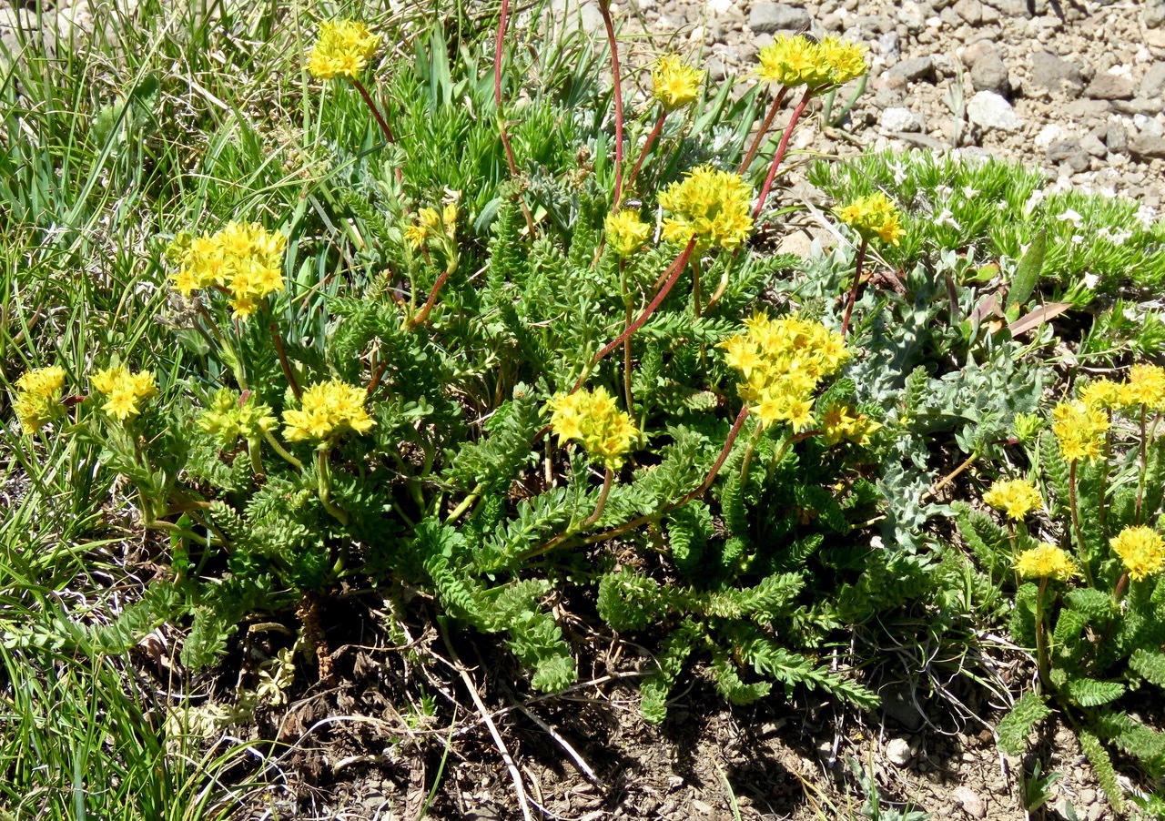 The flowers along the small creek that flows down the side of Meiss Ridge though the Schneider Camp area and into the meadow beyond in the Schneider Camp area bloom and wilt earlier than those that grow to the south of Carson Pass. This is because the area that the flowers grow in is lower than the Carson Pass area and it faces west. It is also well watered by the creek that flows down the side of Meiss Ridge.