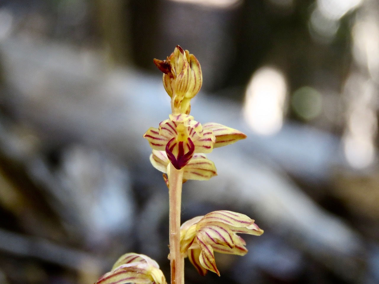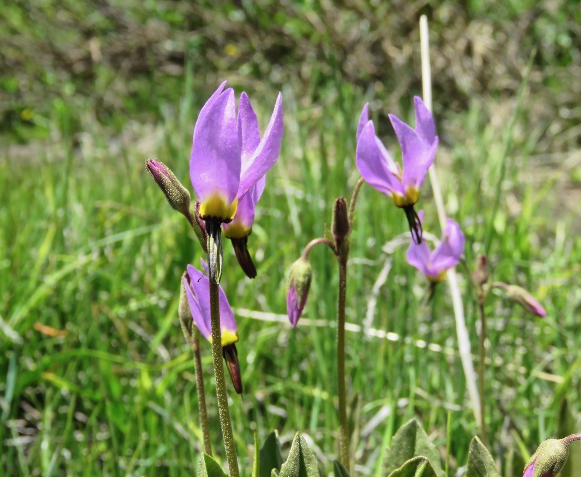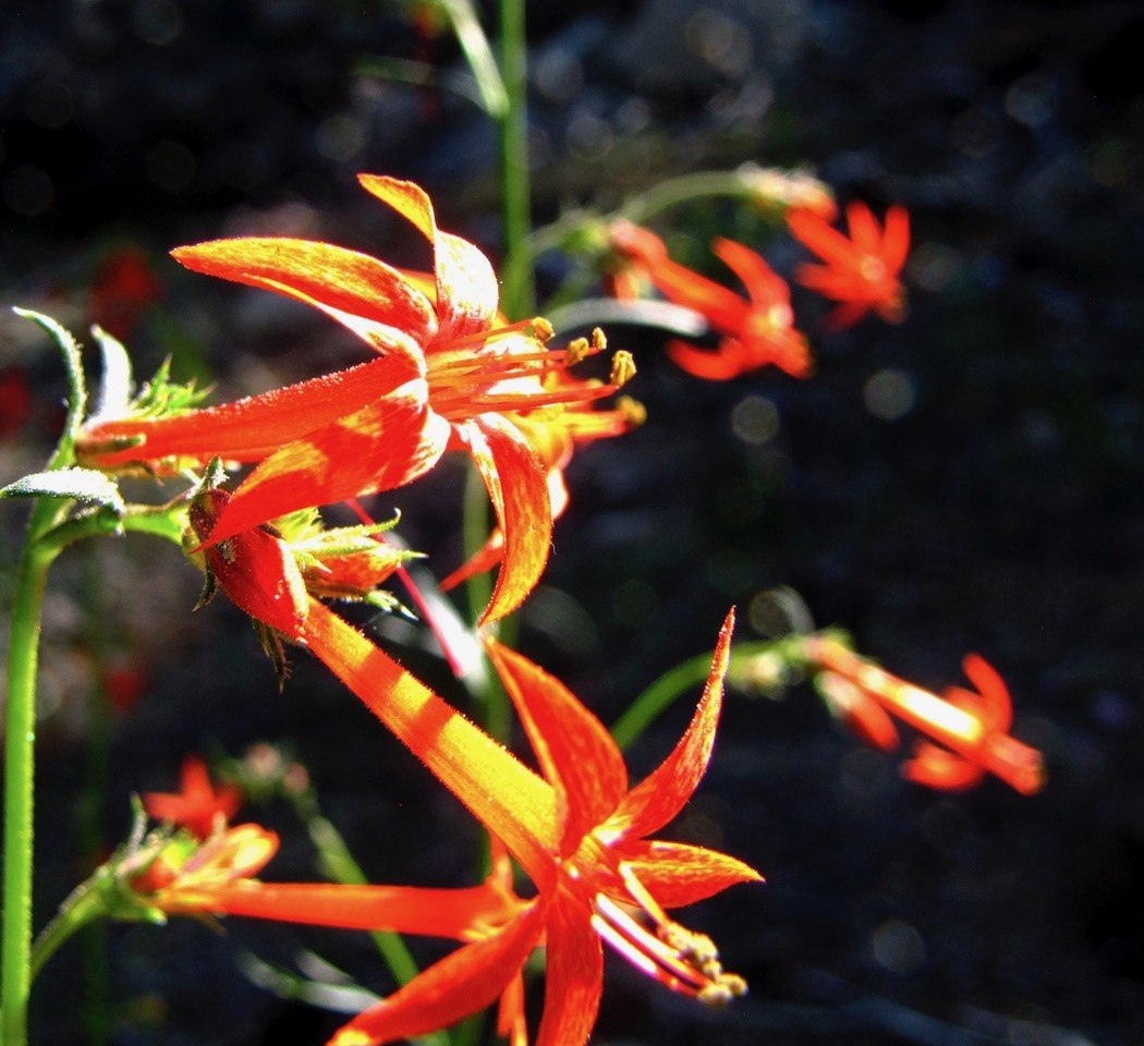 The flowers along the small creek that flows down the side of Meiss Ridge though the Schneider Camp area and into the meadow beyond in the Schneider Camp area bloom and wilt earlier than those that grow to the south of Carson Pass. This is because the area that the flowers grow in is lower than the Carson Pass area and it faces west. It is also well watered by the creek that flows down the side of Meiss Ridge.